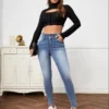 Prepare to make a statement with these high-stretch ripped jeans, featuring strategically placed distressing and tears that exude effortless cool. Each rip adds a touch of attitude to the classic denim design, creating a look that’s both bold and contemporary. Whether you’re hitting the streets or lounging at home, these jeans ensure you stand out from the crowd with undeniable flair.